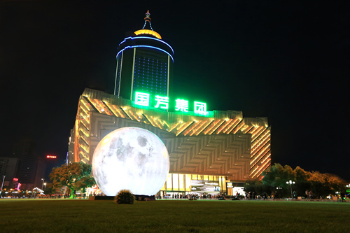 據(jù)國芳百貨相關(guān)負責(zé)人介紹,此次國芳百貨為金城市民帶來的巨型月亮,直徑將達到15米,相當(dāng)于一個5層樓建筑的高度。而中秋節(jié)期間,通體發(fā)光的巨型月亮將與懸于天際的月亮一起,持續(xù)點亮蘭州的夜空。今夜,巨型月亮就將亮相東方紅廣場,這意味著這個中秋,月亮距您只有9米。