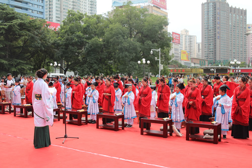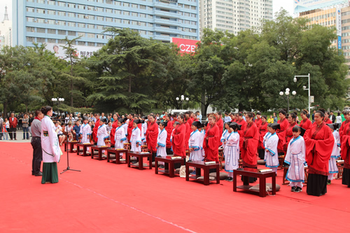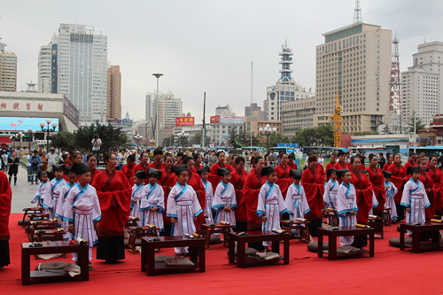 傳承中國文化,啟發(fā)學(xué)子奮發(fā)向上,再現(xiàn)古典禮儀之莊重恢弘。9月10日,國芳集團(tuán)在東方紅廣場舉行大型漢式拜師禮開筆禮儀式。本次活動共招募40名6-9歲的學(xué)子參加。拜孔子、點朱砂、擊鼓明志,引眾多市民觀禮。