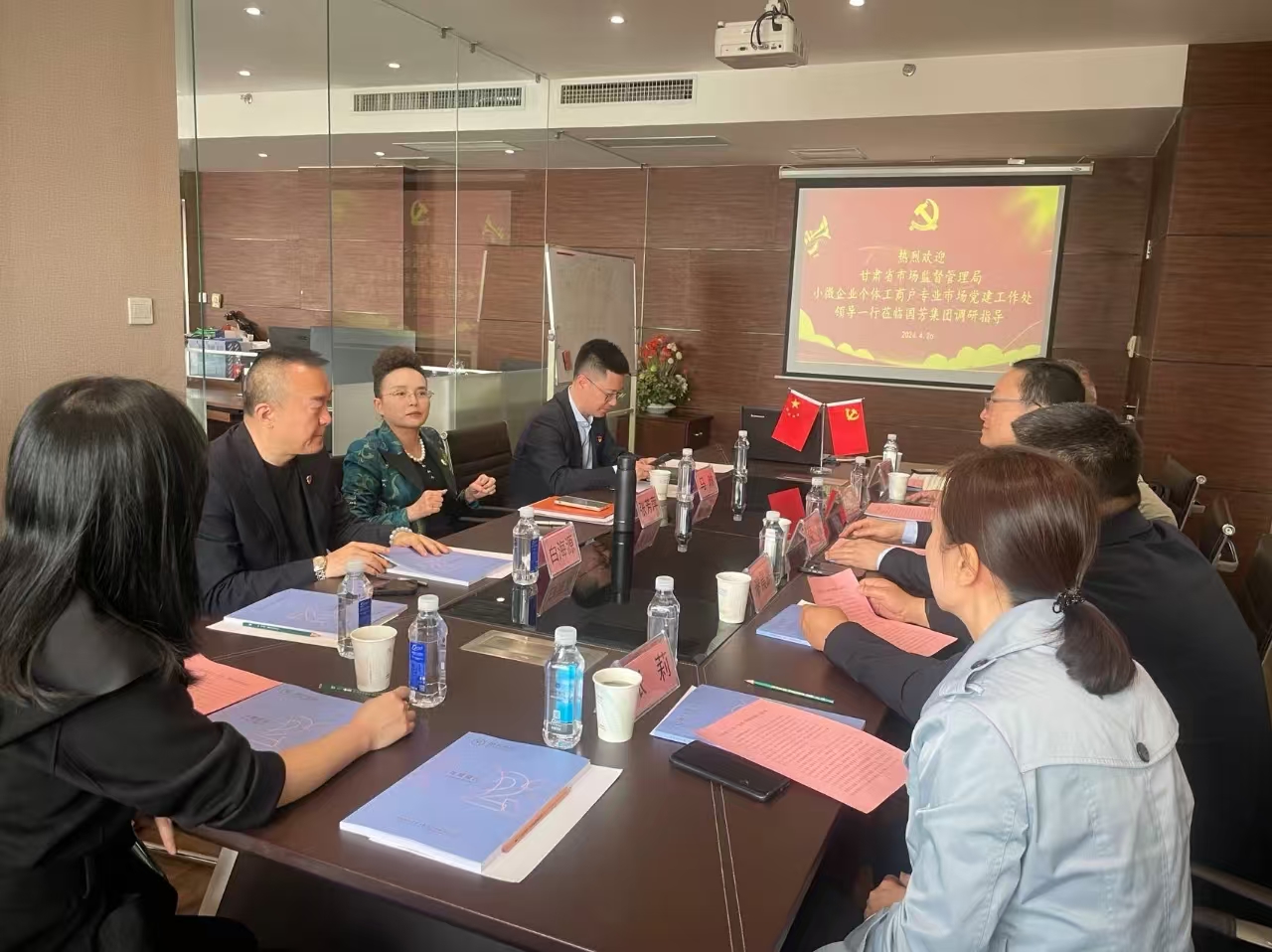 2024年4月26日,甘肅省市場監(jiān)督管理局小微企業(yè)個體工商戶專業(yè)市場黨建工作處侯巍處長與省、市、區(qū)、街道四級市場監(jiān)管局非公有制經(jīng)濟黨建處室相關(guān)負責(zé)人一行蒞臨國芳集團黨委進行調(diào)研指導(dǎo)并座談交流。